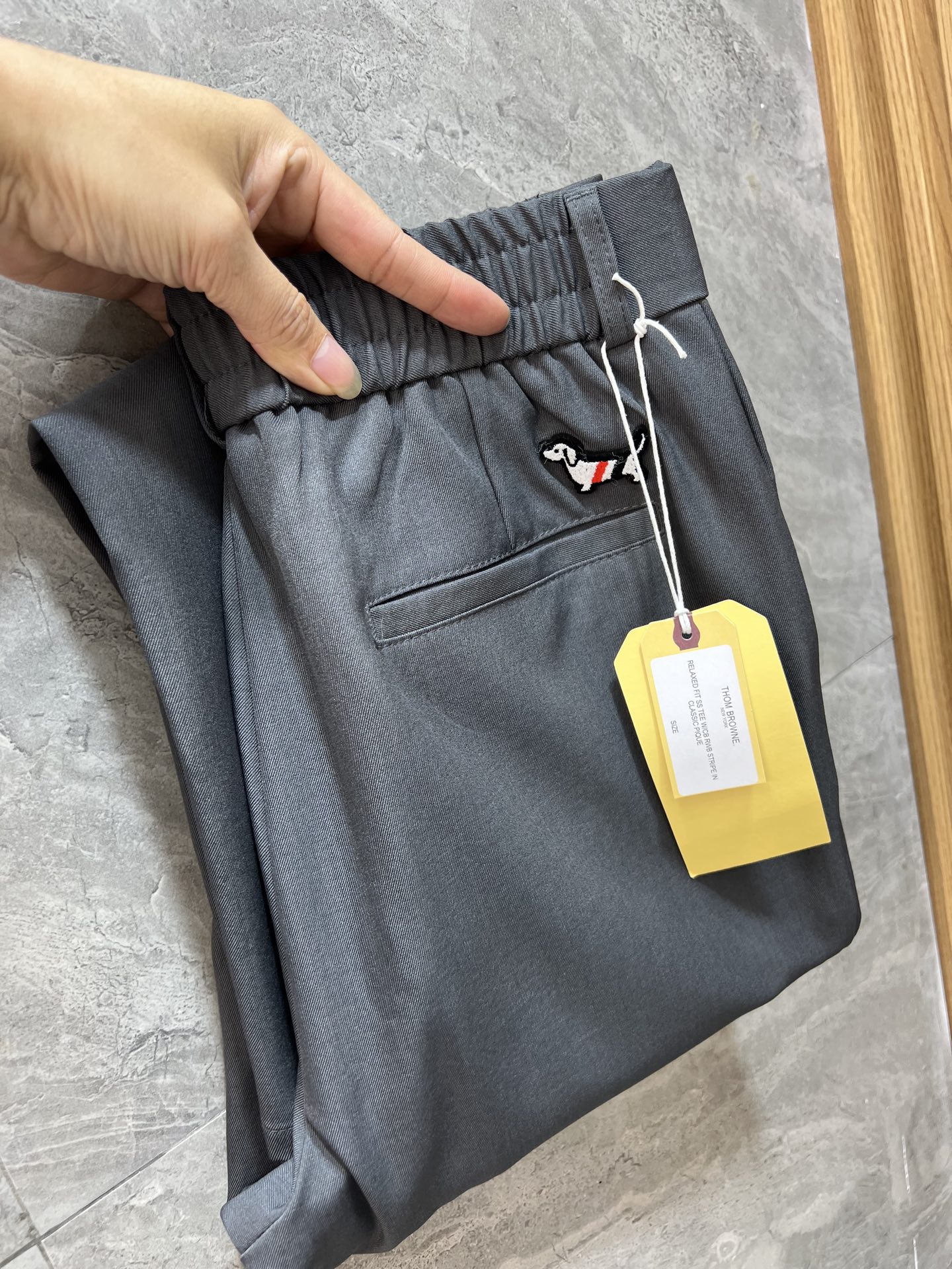 NO:4355471. Aceasta este de la haine de proiectant Thom Browne.